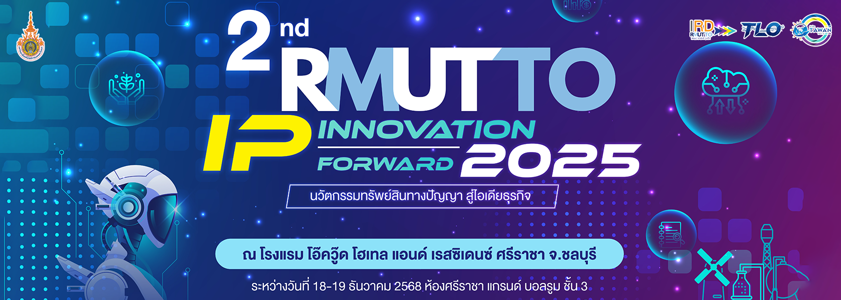 หน่วยจัดการสิทธิเทคโนโลยี (TLO) ภายใต้ สถาบันวิจัยและพัฒนา มหาวิทยาลัยเทคโนโลยีราชมงคลตะวันออก ได้จัดกิจกรรมการสร้างรายได้จากทรัพย์สินทางปัญญา IP INNOVATION FORWARD 2025 ครั้งที่ 2