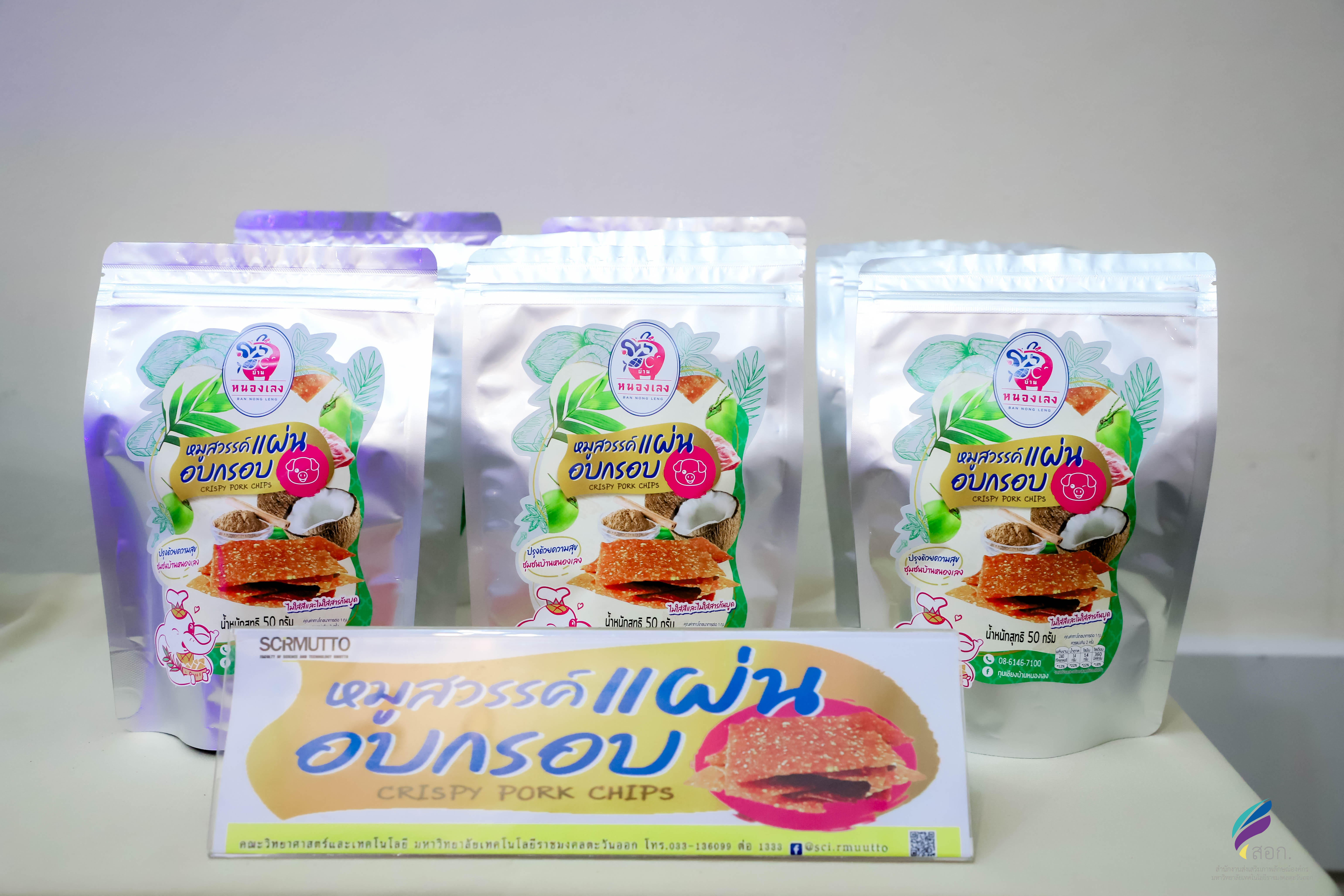 หมูสวรรค์แผ่นพร้อมปรุงที่มีกากมะพร้าวเป็นส่วนประกอบ